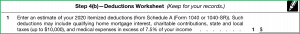 1. Put the estimated amount of your 2020 itemized deductions on line 1. This number can include: