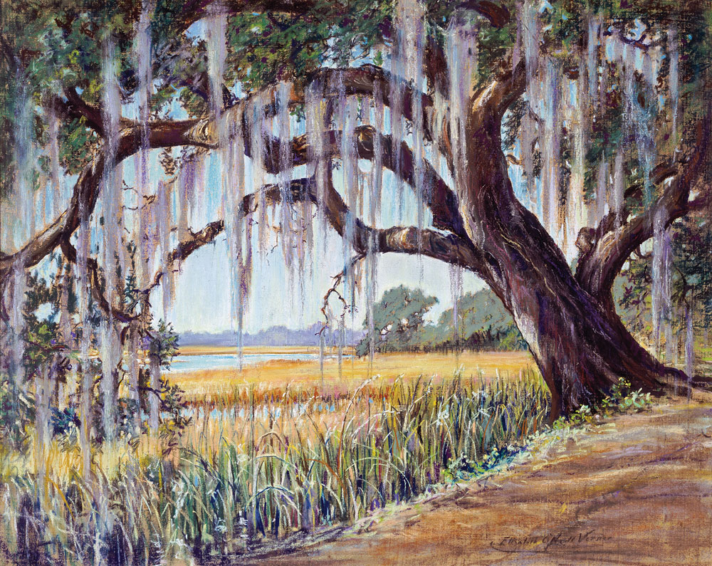 - Fig. five: Elizabeth O'Neill Verner (1883–1979), Untitled (landscape), ca. 1965. Pastel on silk on board, 31-1/4 x 34-iii/iv inches. Gibbes Museum, Charleston, South.C., Souvenir of Mr. and Mrs. Richard K. Smith (2001.001).